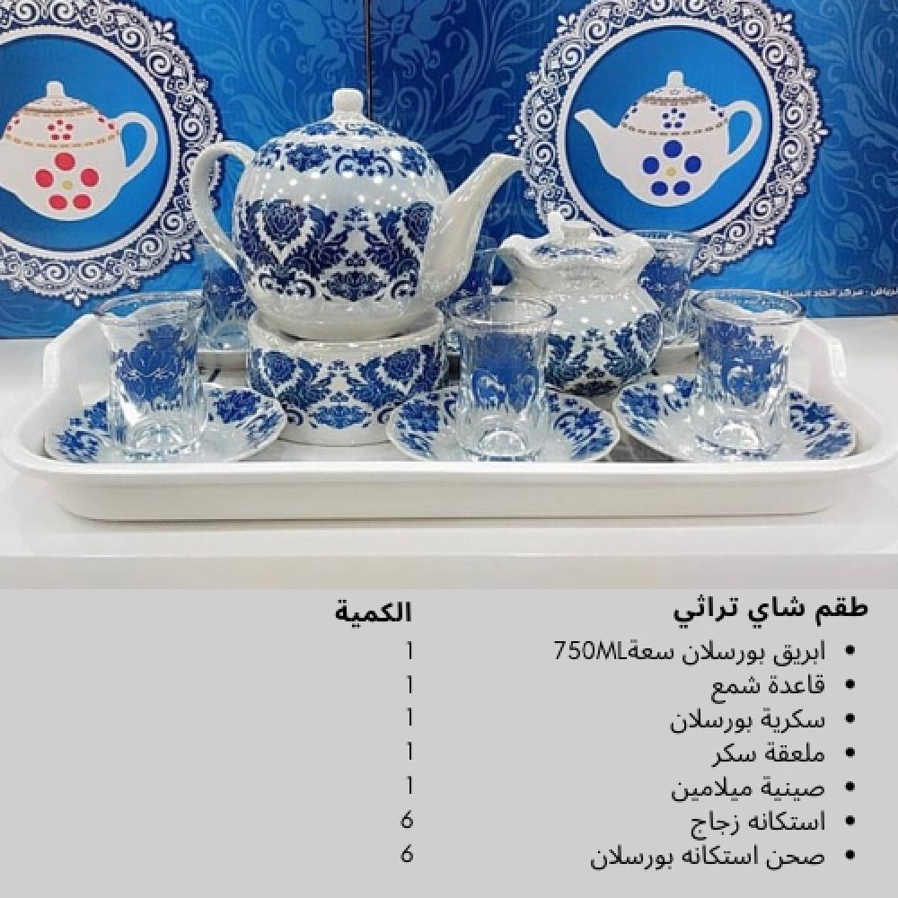 طقم شاي بورسلان يحتوي:ابريق بورسلان سعة 750 ملي تقريباقاعدة تسخين بالشمع بورسلانسكرية بورسلانملعقة بورسلانصينية ميلامينعدد 6 استكانه شايعدد 6 صحن استكانهالصنع الصين
